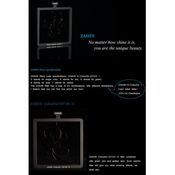 ZASHN Colourful-RY 100 IV filter combined with red wire and golden wire. Such colorful filter will give you what amazing effects, we shall see. ZASHN filters’ frame is made up of high quality aviation aluminium. This kind material has tough wear-resistant and corrosion resistance. By our control on each process and layer by layer inspection strictly, ZASHN filters finally become what we all like today.
