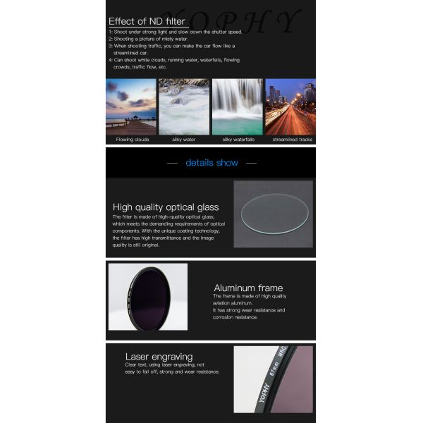 YOPHY optical glass multi layer coating HD camera lens filters UV CPL ND square filters