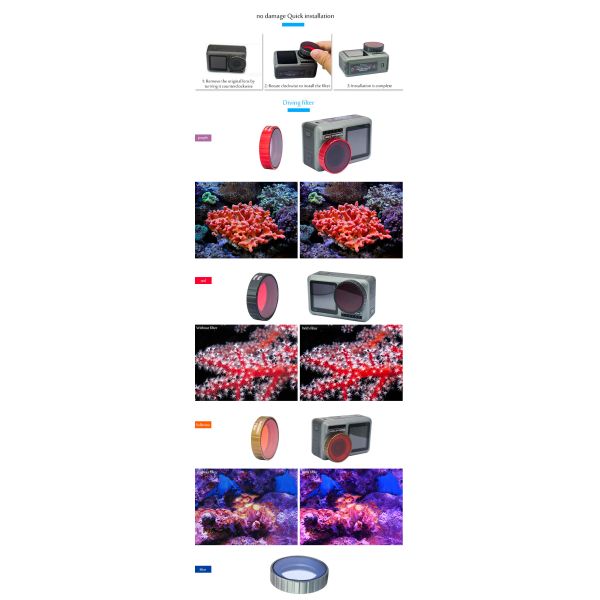 | Type | Diving Underwater filters for DJI OSMO Action camera |