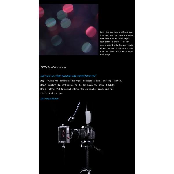Step 3. Putting ZASHN special effects filter on another tripod, and put it in front of the lens.