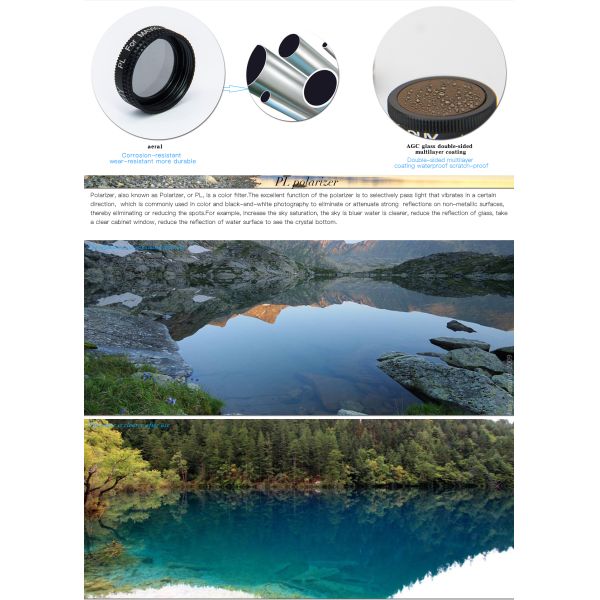 Polarizing filters reduce reflections on shiny objects and increase contrast and color saturation, much like polarizing sunglasses do, and drones are often used to film water sports and using the filters you can literally see through the water, the sky is more blue and trees are more green. The degree of this effect can be changed by turning the filter. Besides, Using an ND filter the shutter speed can be lowered which results in motion blur and a more desirable cinematic video. The goal is to achieve a shutter speed that is double the frame rate(180 degree rule), the ND/PL filter is a combination, featured two functions in one construction, it will give you convenient efficient aerial experience.